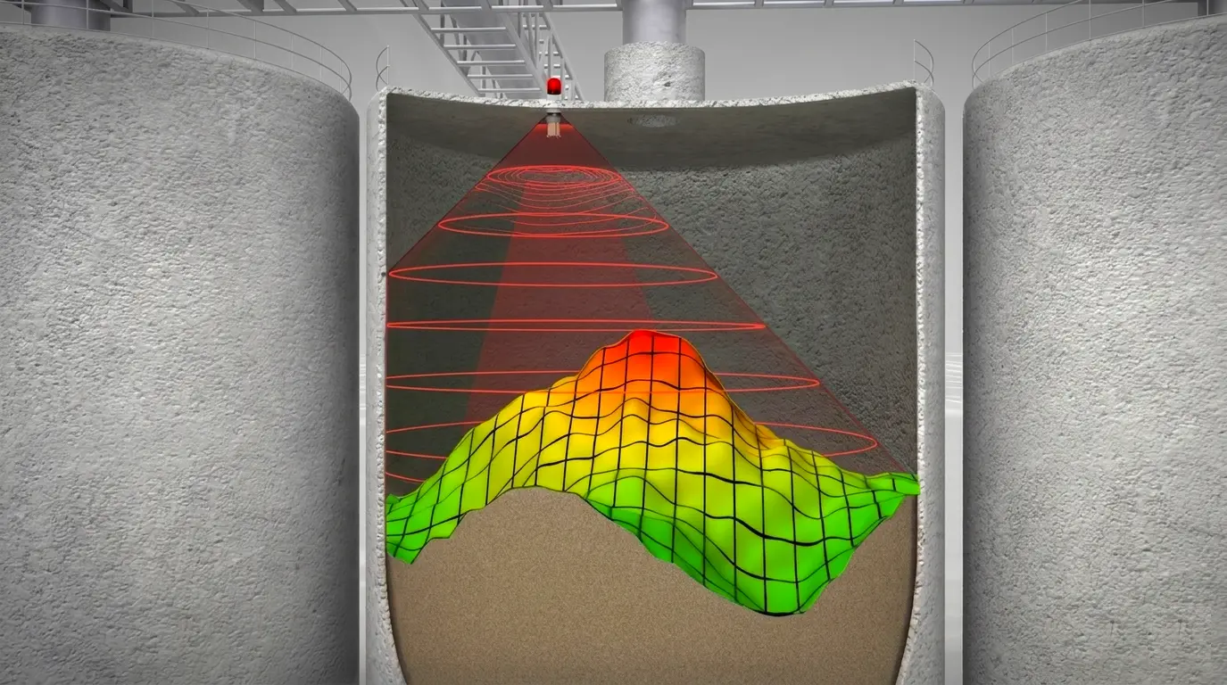 El 3D Level Scanner está pensado para aplicaciones donde la superficie del material no es uniforme y se necesita una visión más completa del contenido almacenado dentro del silo.